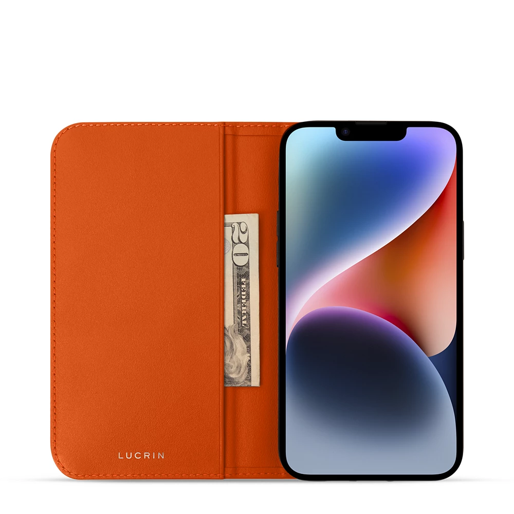 Minimalistische Brieftasche – iPhone 14 Plus Orange  - Glattleder