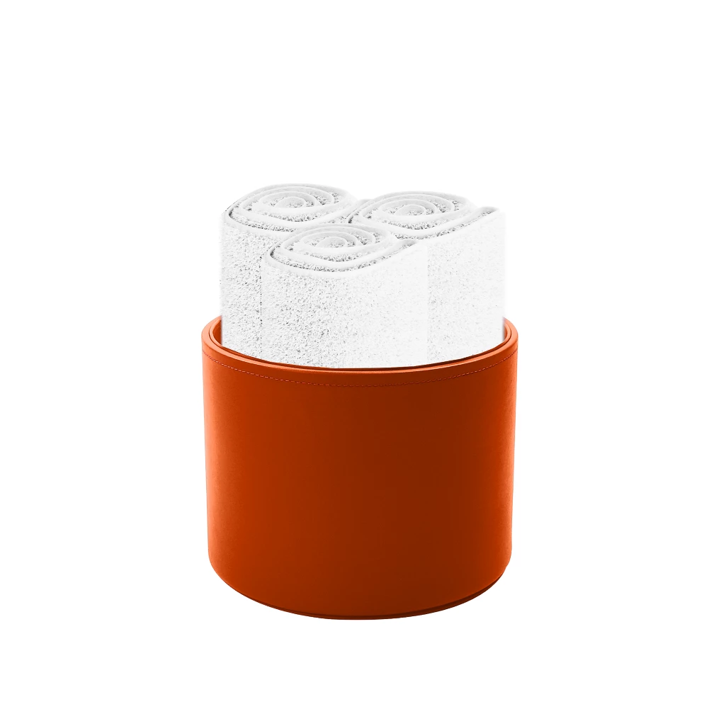 Dieser von Hand gefertigte Lederkorb kombiniert traditionelles Kunsthandwerk mit Funktionalität und ist die ideale Aufbewahrungsoption für eine elegante und stilvolle Inneneinrichtung. Die zylinderförmige Holzstruktur dieses kleinen Eimers ist mit luxuriösem Leder bezogen, um eine leichte und lang anhaltende Basis zu bilden. LUCRIN Geneva gibt ihm mit subtilen, personalisierbaren Nähten den letzten edlen Schliff. Verstauen Sie alles von Zeitschriften bis zu Handtüchern ordentlich in diesem Multifunktionskorb, der ebenfalls für Büffets, Zimmerservice und auf Tischen verwendet werden kann. Gestalten Sie den perfekten runden Ablagekorb, um Ihre Inneneinrichtung abzurunden, indem Sie die Lederart und Farbe personalisieren.