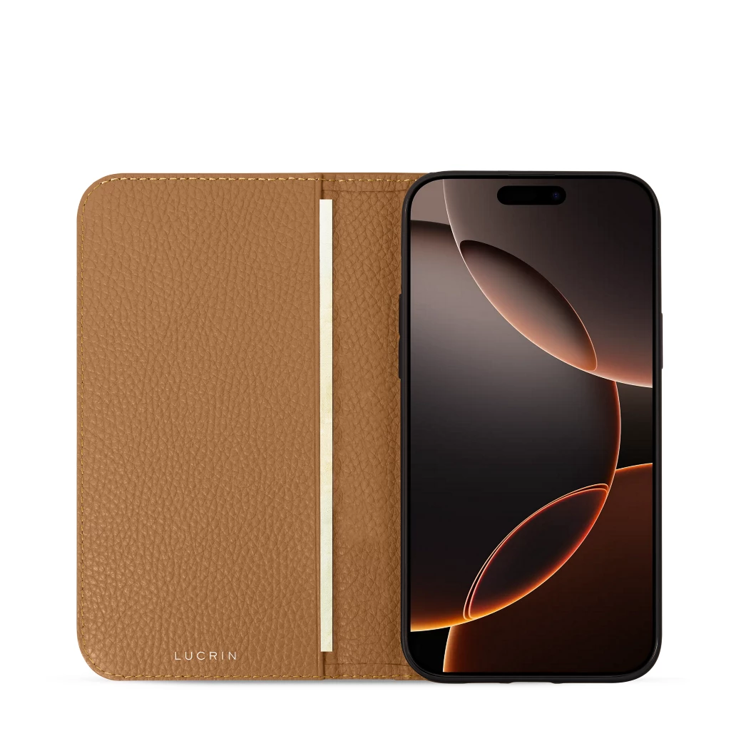 Minimalistische Brieftasche - iPhone 16 Pro Max Ocker  - Genarbtes Leder