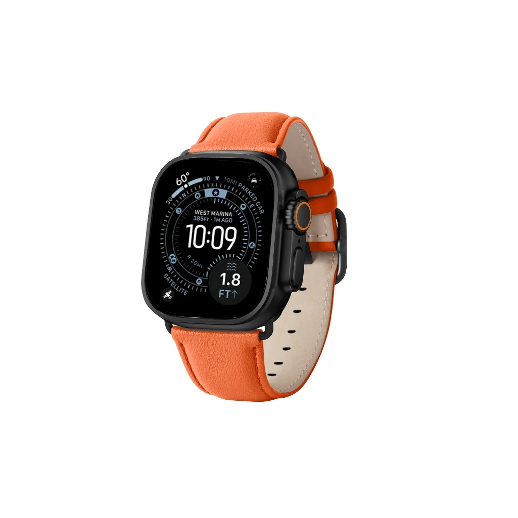 Werten Sie Ihre schwarze Apple Watch Ultra 3 mit unseren Premium-Ersatzarmbändern aus Leder auf, die in verschiedenen Vollnarbenlederarten und Farben erhältlich sind. Diese Armbänder sind präzise gefertigt und verfügen für eine längere Lebensdauer und eine glatte, edle Oberfläche über gefaltete Ränder. Das Design mit Dornschließe bietet sowohl einen sicheren als auch verstellbaren Sitz und ist somit ideal für den ganzen Tag. Diese Armbänder sind aus hypoallergenen Materialien gefertigt, die sanft zur Haut sind und maximalen Komfort bieten. Verleihen Sie Ihrem Armband mit einem Monogramm eine einzigartige Note und genießen Sie mit Ihrer Apple Watch Ultra 3 die perfekte Mischung aus Stil, Funktionalität und Komfort.